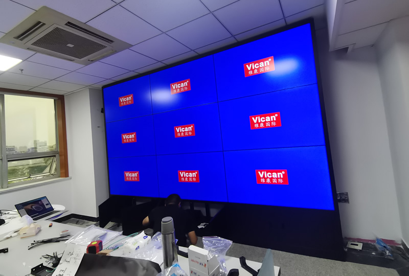 本案例中,維康國際中國人壽某分公司提供一套辦公室顯示大屏,采用3行3列、55寸液晶拼接屏,拼縫為3.5mm,大屏分辨率高,顯示清晰,視覺體驗效果好。