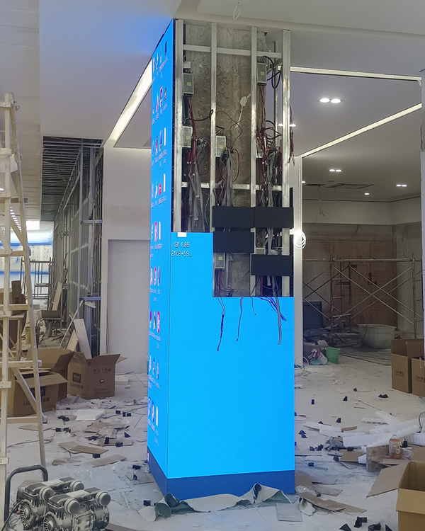 根據(jù)設(shè)計(jì)規(guī)劃,首先搭建圓柱型LED顯示屏的安裝支架結(jié)構(gòu)。支架需穩(wěn)固可靠,能夠完全承受顯示屏的重量。