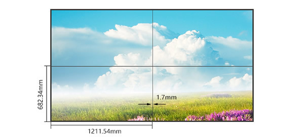 1、京東方原裝面板,超窄邊設(shè)計,雙邊拼接只有1.7mm,有著很好是大屏畫面一體化顯示效果。